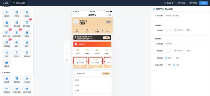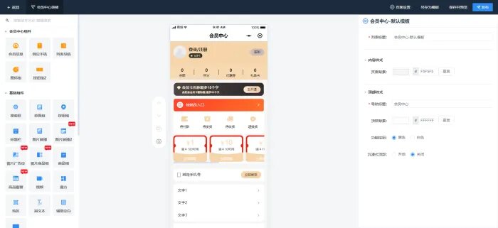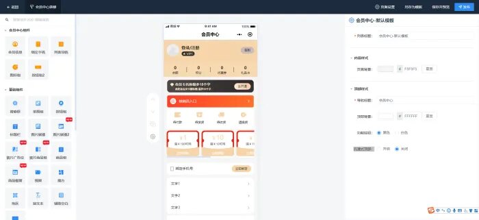 列表导航:支持自定义装修会员中心列表;