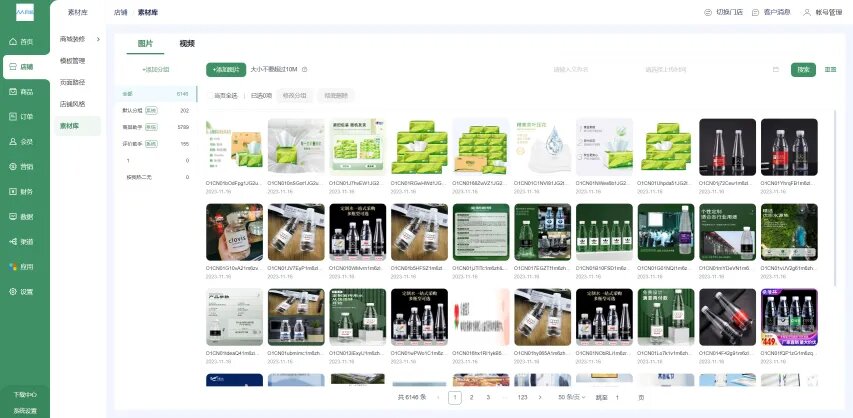 素材库里的图片和视频展示的是图片选择器里的内容;支持添加图片、批量修改素材分组、和批量删除素材等;