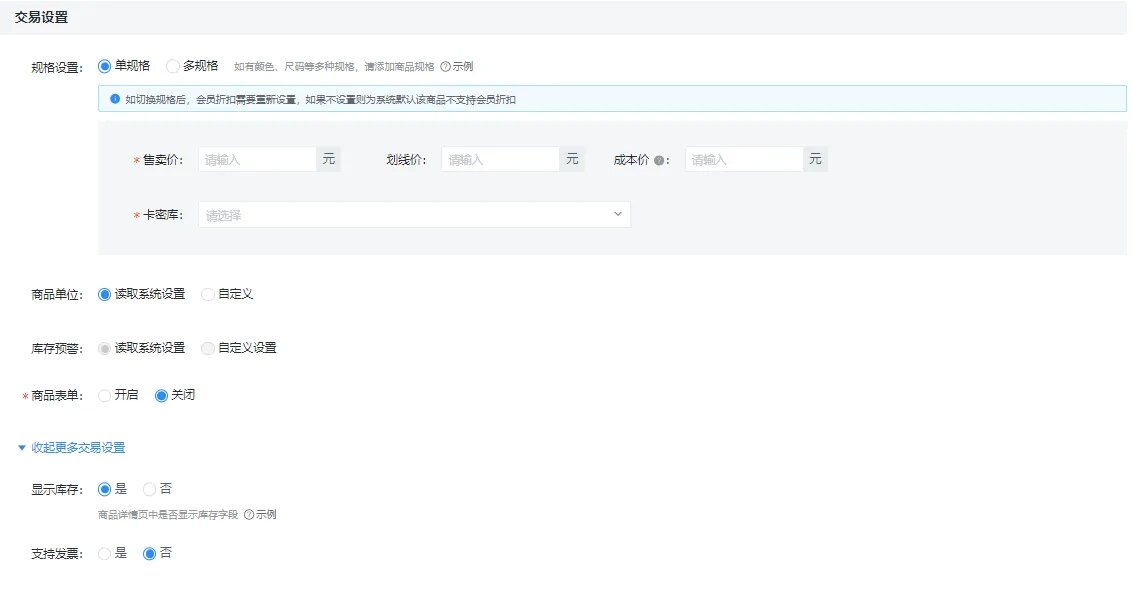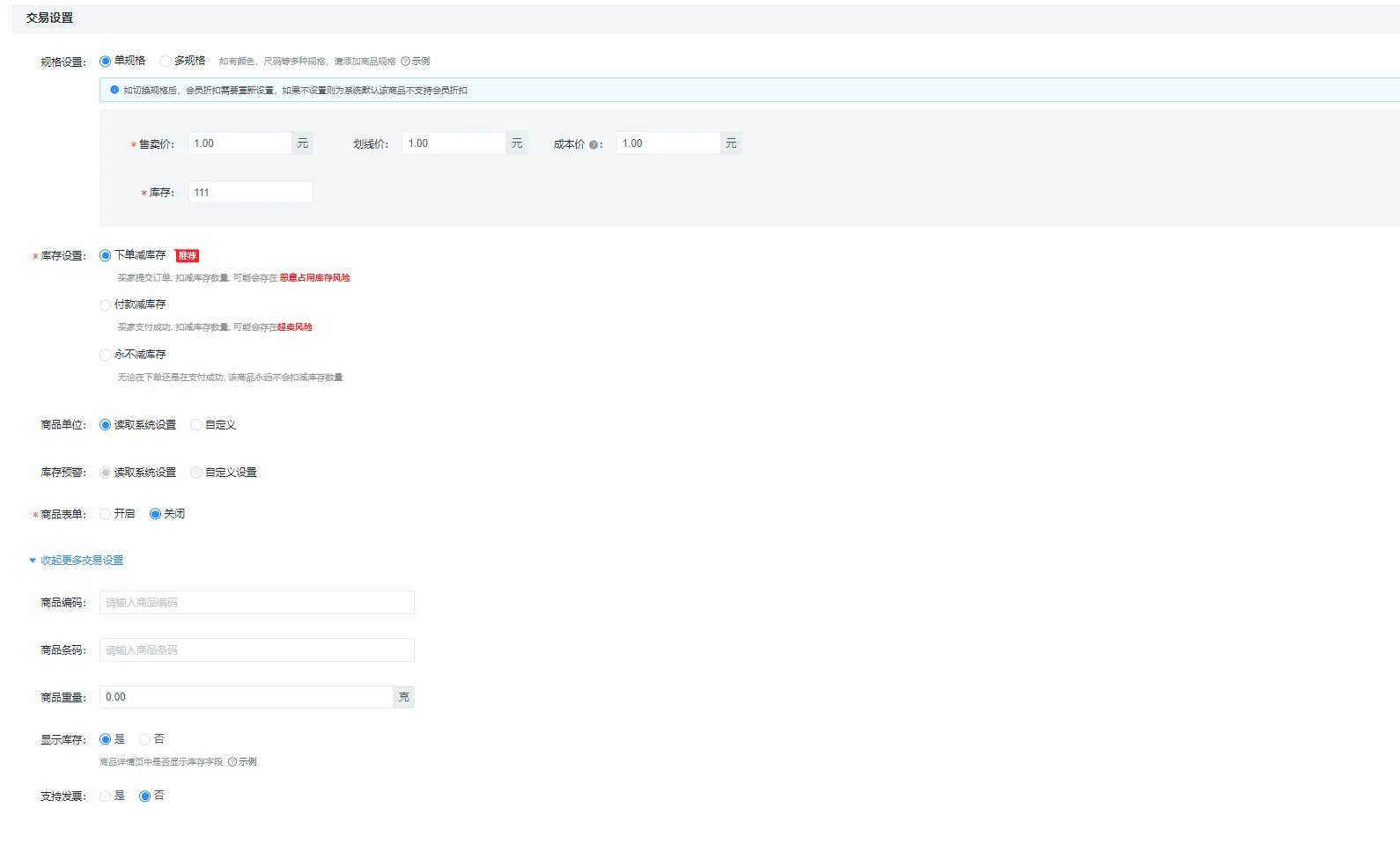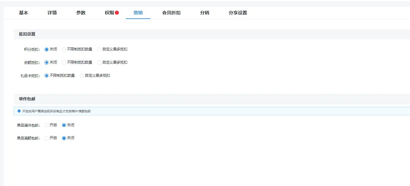 当设置了会员折扣,而后修改商品规格,则此处将会自动变成不支持会员价。
