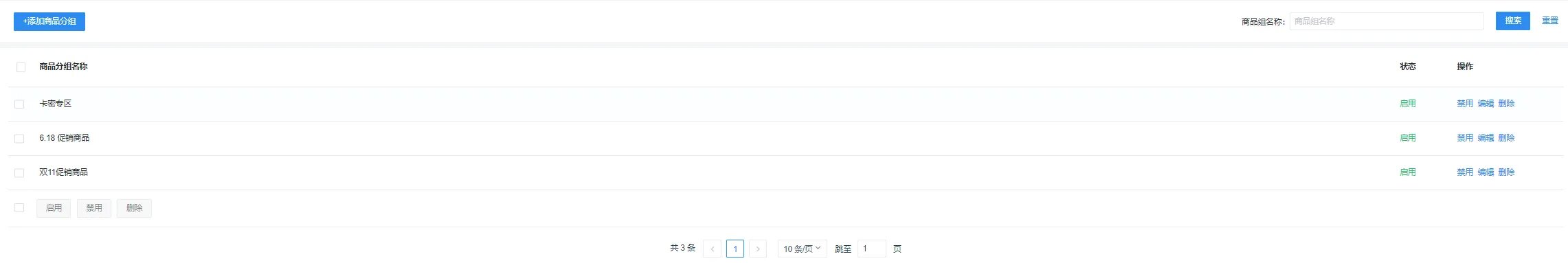 支持添加、搜索、编辑和删除分组;主要用于商品组组件中,便于商品管理及按照分组添加商品;