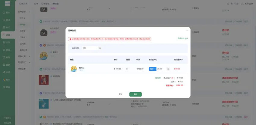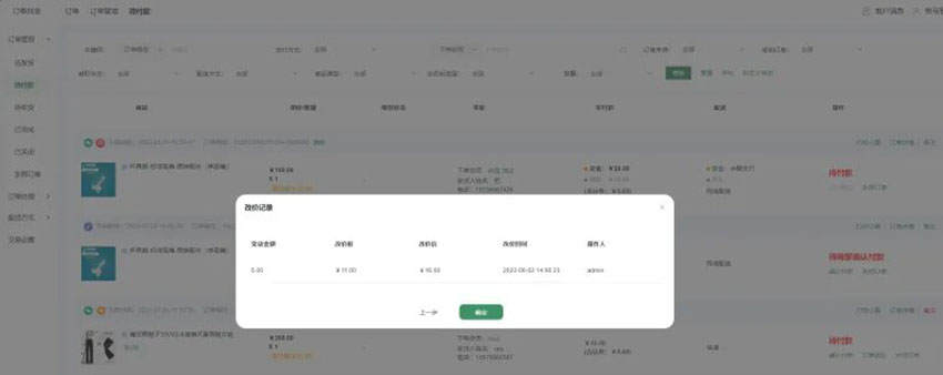 5.订单改价:可以给订单修改价格后让买家再支付,支持一键归零